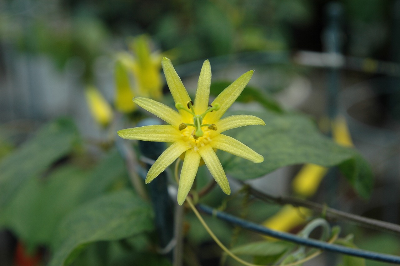 パッシフロラ・キトリナ 最終更新日:2017.10.11 Wednesday 唯一の黄花種で、花付きが良く春~秋まで次々と開花します。 科名トケイソウFamilyPassifloraceae学名Passiflora citrina耐寒性5℃花径35—5.5cm原産地グアテマラ東部~ホンジュラス中部