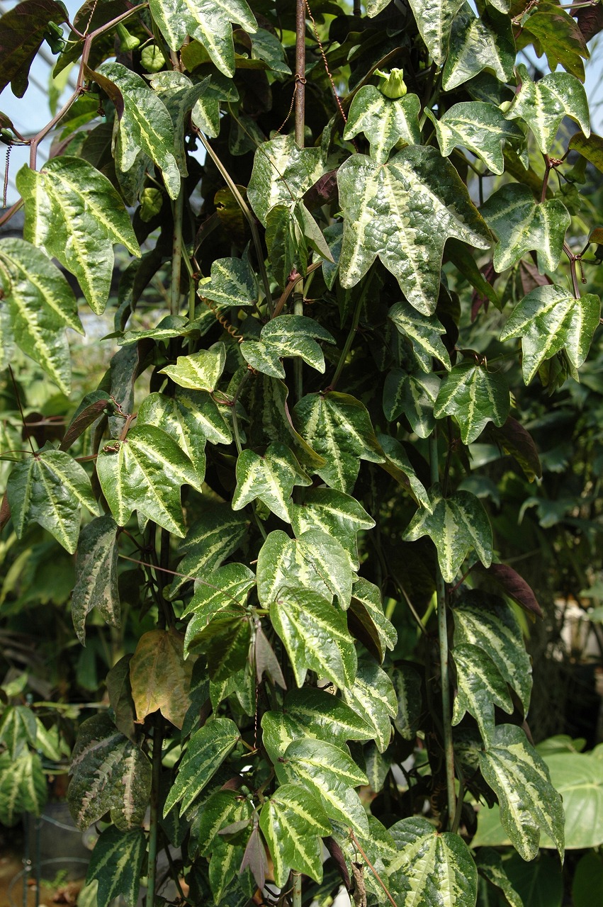 パッシフロラ・トリファスキアタ A(catalog_betsumei) 最終更新日:2017.10.11 Wednesday 観葉種で美しい葉模様が魅力的です。 科名トケイソウFamilyPassifloraceae学名Passiflora trifasciata A耐寒性5℃花径2.5—3.5℃原産地ブラジル、エクアドル、ペルー