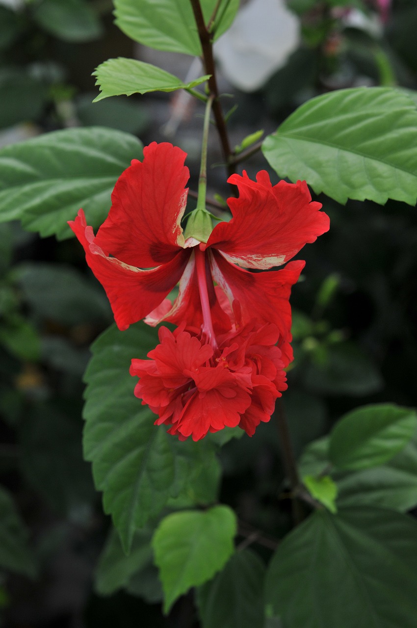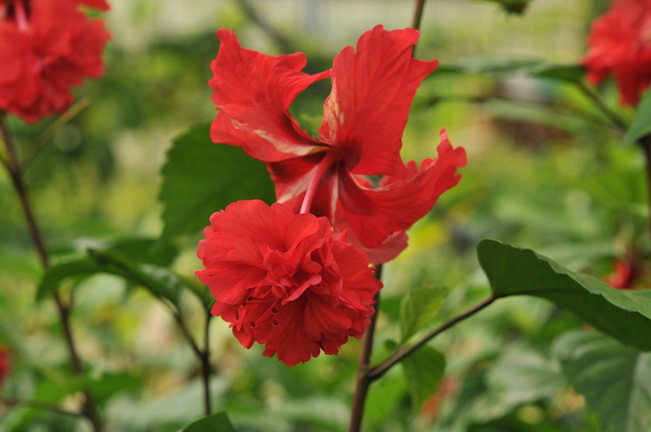 ヒビスクス‘フラミンゴ’ 最終更新日:2017.10.11 Wednesday コーラル系。フラミンゴの赤花です。花は雄しべが弁化して二段咲きとなります。花色は朱赤色で中心は濃紅色となり、白色も混じります。 科名アオイFamilyMalvaceae学名Hibiscus ‘Red Flamingo’