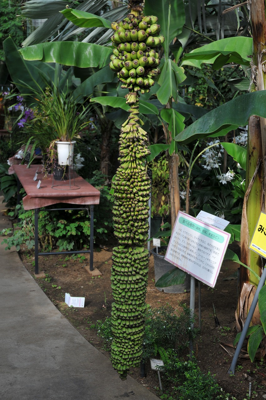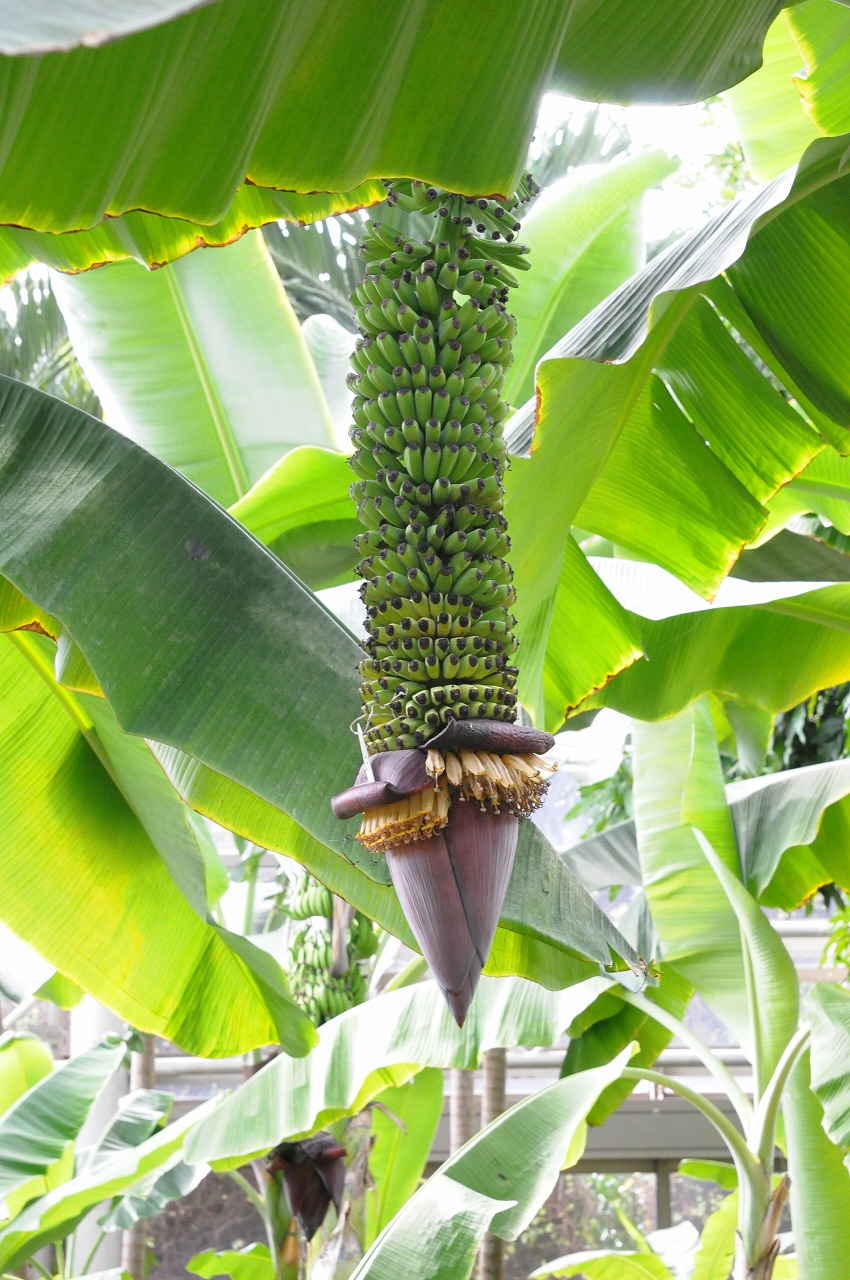 センナリバナナ 最終更新日:2017.10.11 Wednesday 偽茎の高さは2-3mとなります。花序の長さは1—2mとなり、小さな実をびっしりつけるため、千成バナナの名があります。実は食用に向かず、飼料用とされていますが、黄色く熟した実を食べたらとても小さいながらバナナの味がして食べられました。 科名バショウFamilyMusaceae学名Musa chiliocarpa原産地マレー