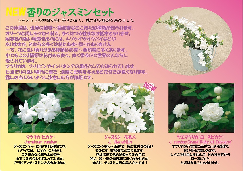 数あるジャスミンの仲間の中から厳選した弊社オリジナルのセットです。
