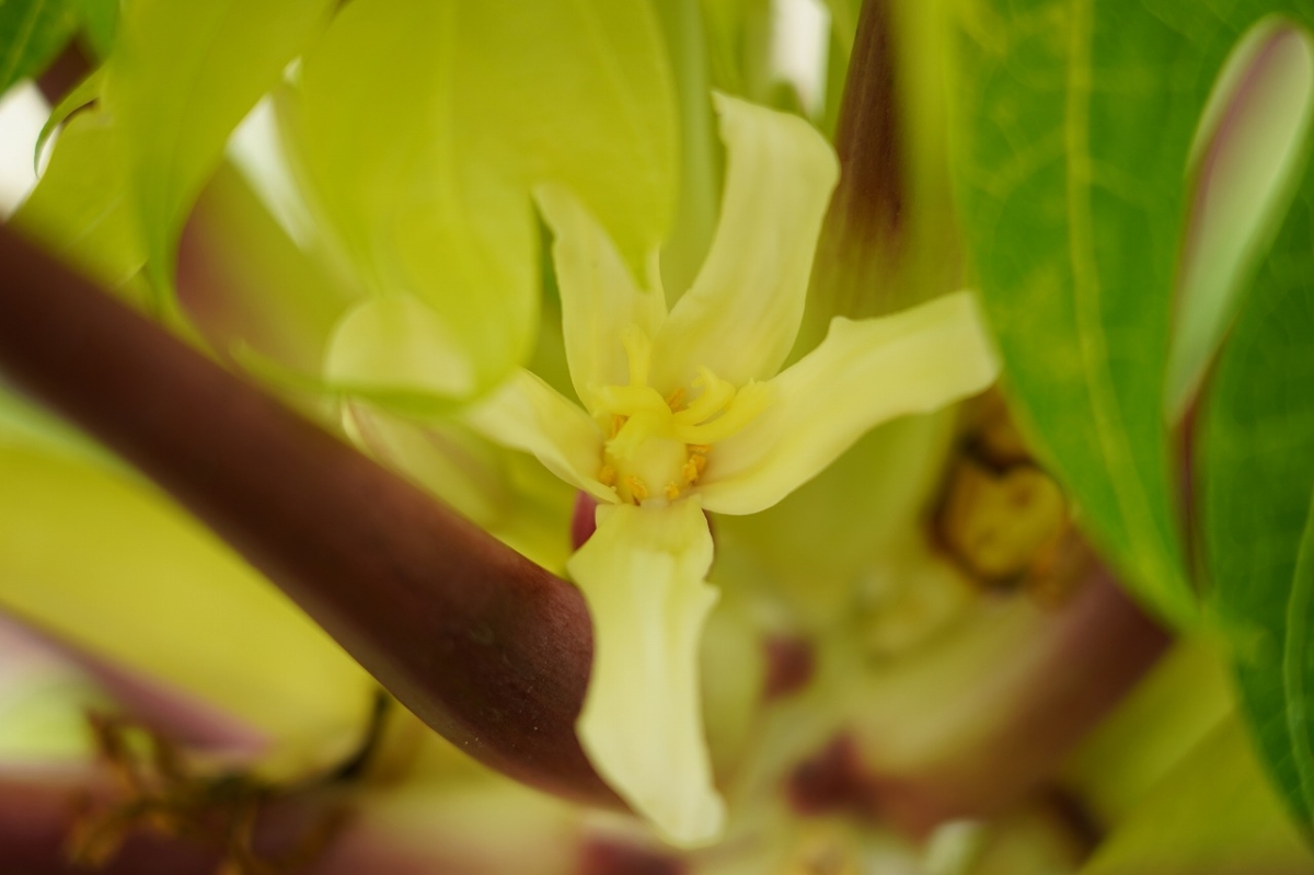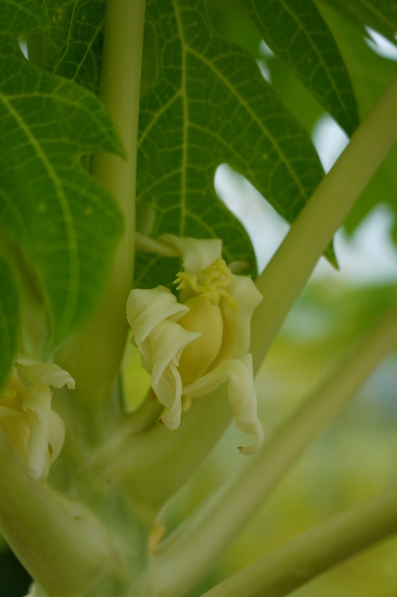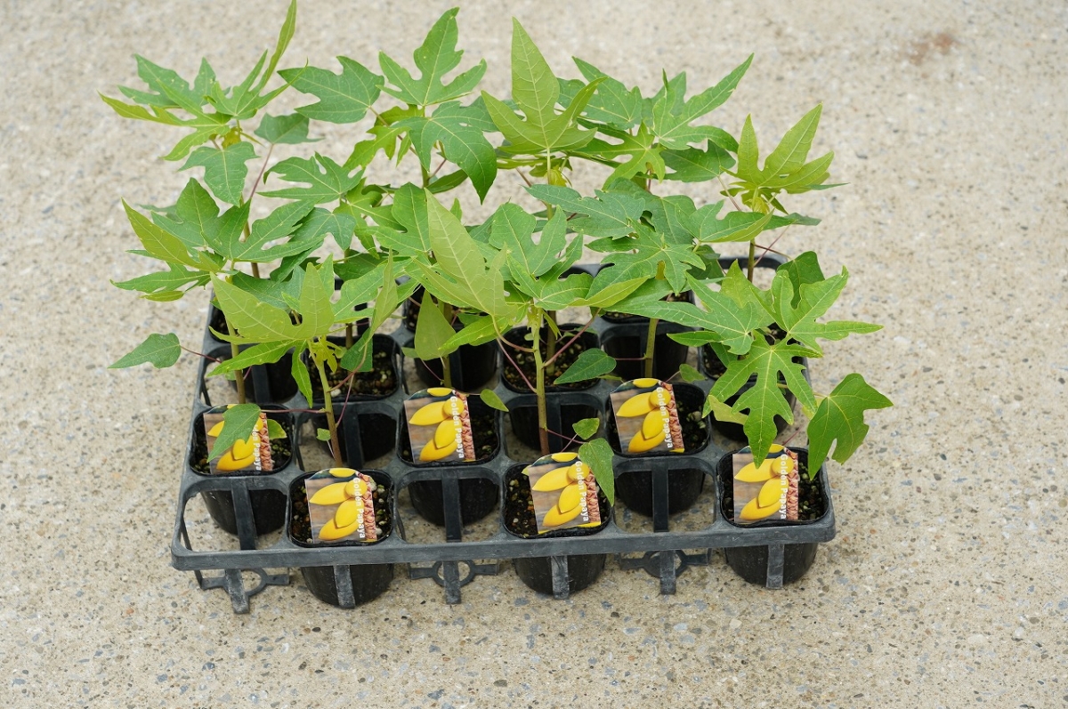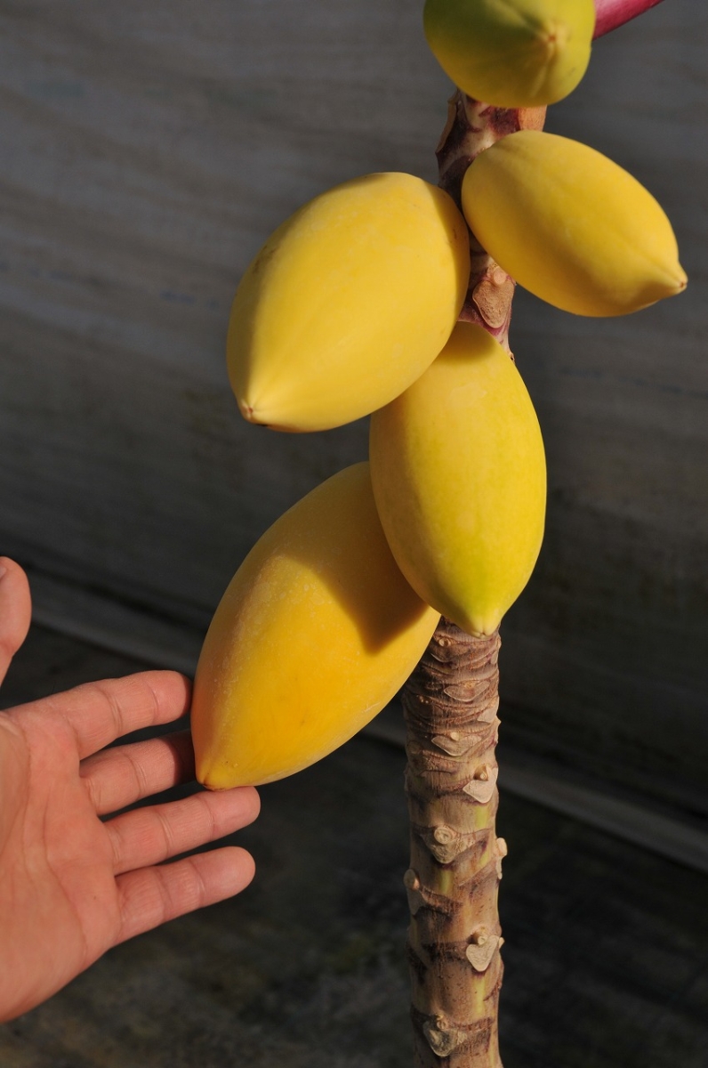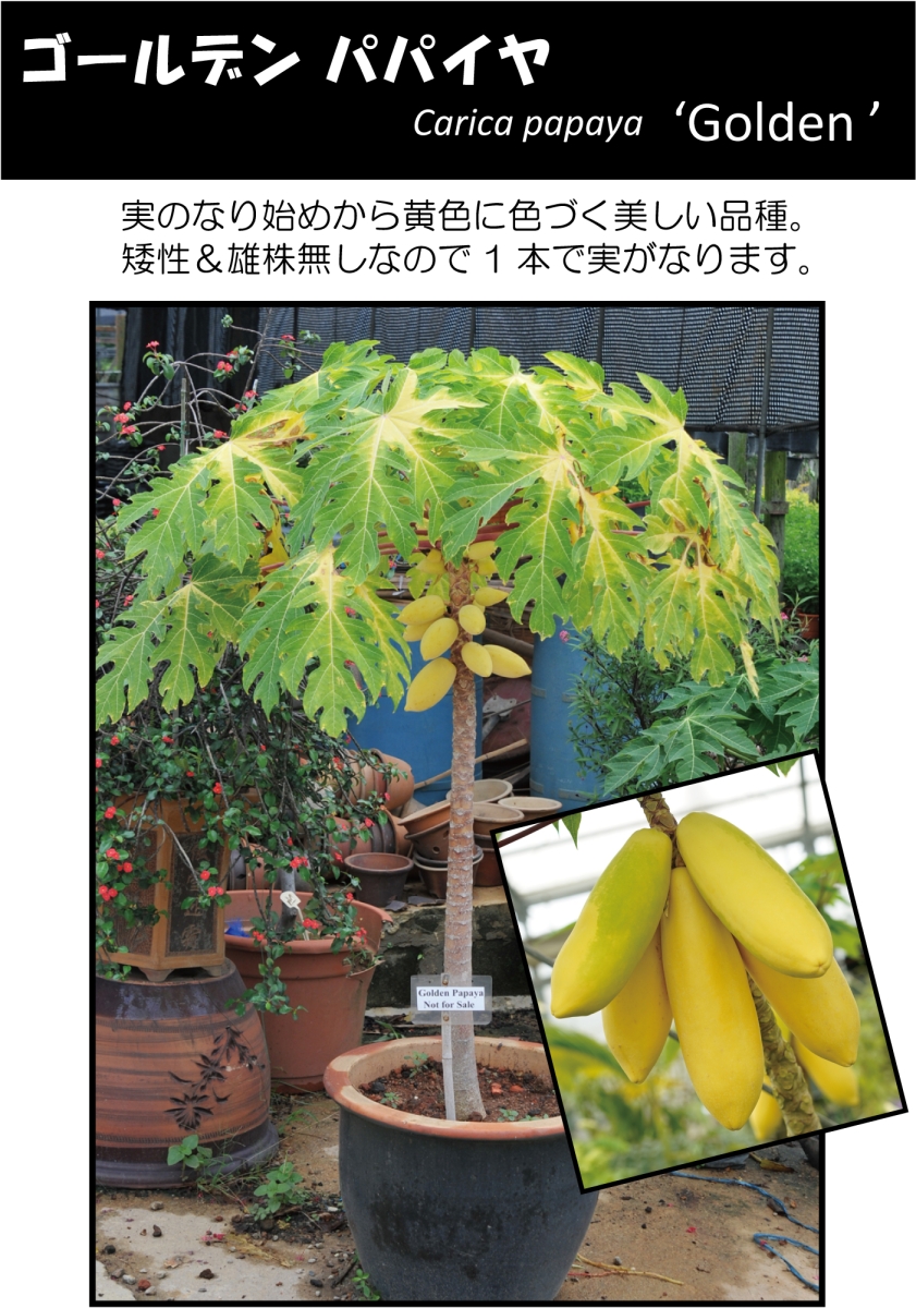 パパイヤの矮性品種で、実のなり始めから果皮が黄色くなる珍しいものです。